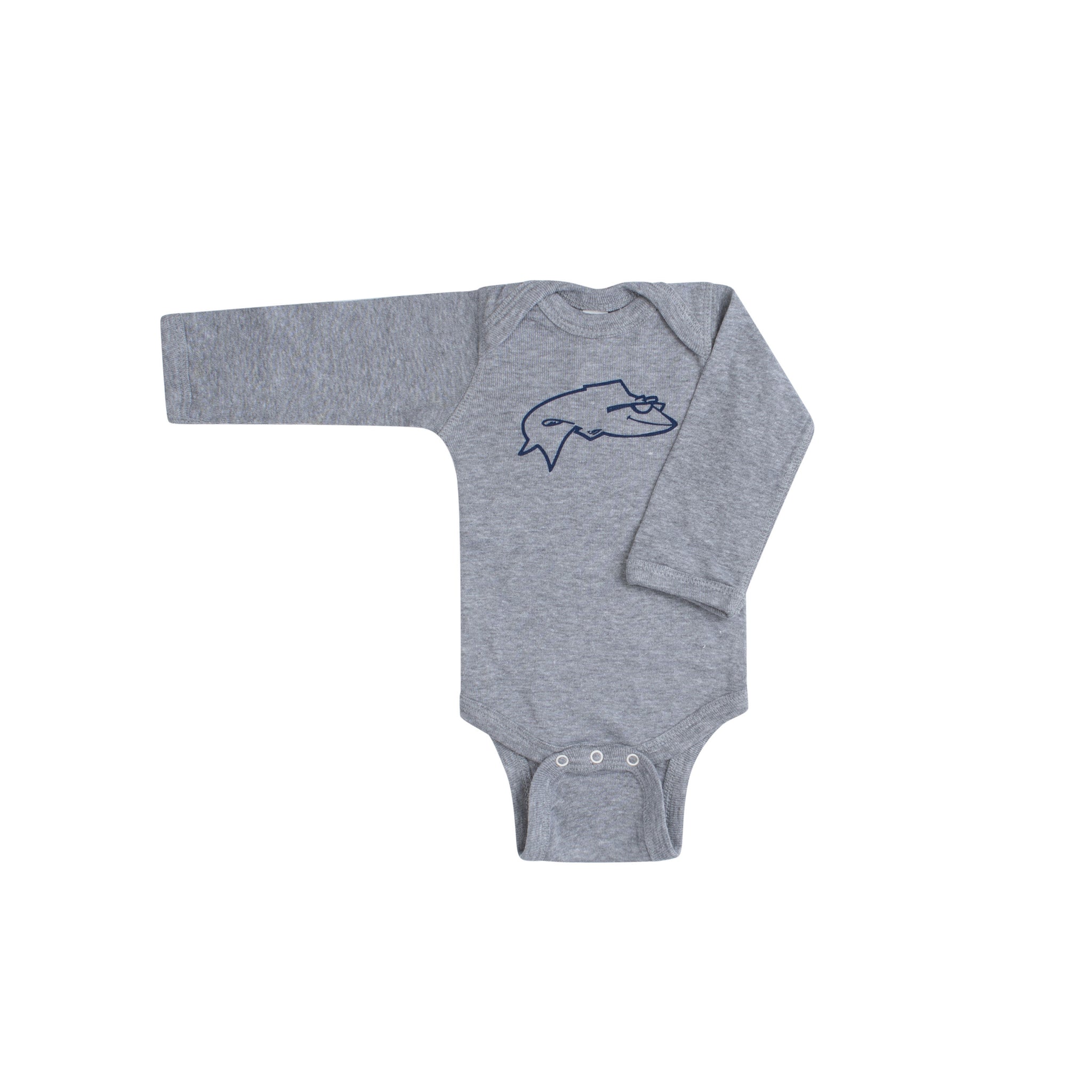 Keep the tiniest of Cutthroats cozy in a long-sleeve onesie featuring lap shoulders for easy changing. White is 100% combed ring-spun cotton. Heather is 88/12 combed ring-spun cotton/poly. Three snap closure and EasyTear label. Made by Rabbit Skins.